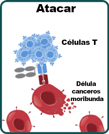 T biespecífico, o molécula BiTE®, que tiene dos partes clave: una parte que se adhiere a las células T, un tipo de célula inmunitaria, y una parte que se adhiere a las células cancerígenas.